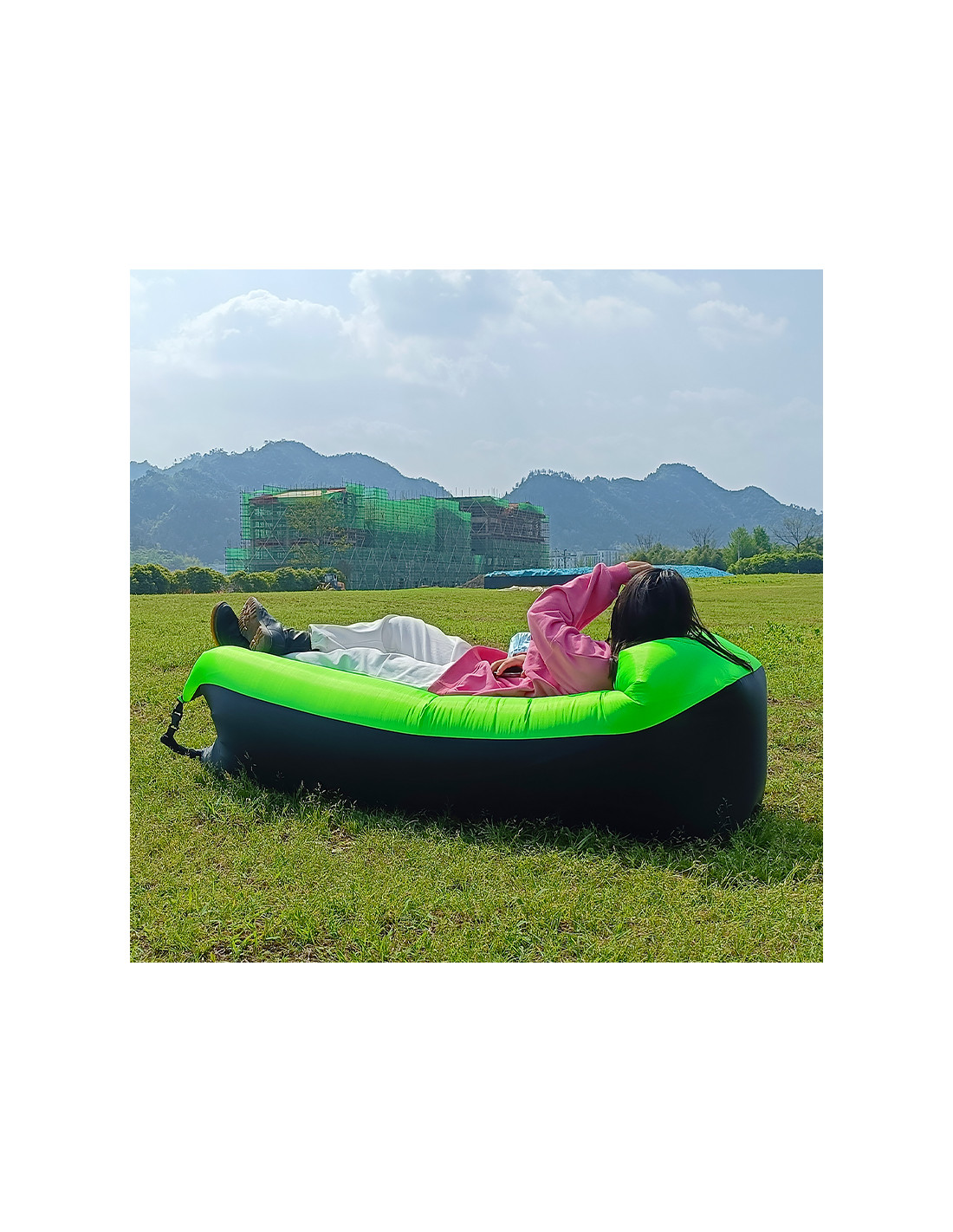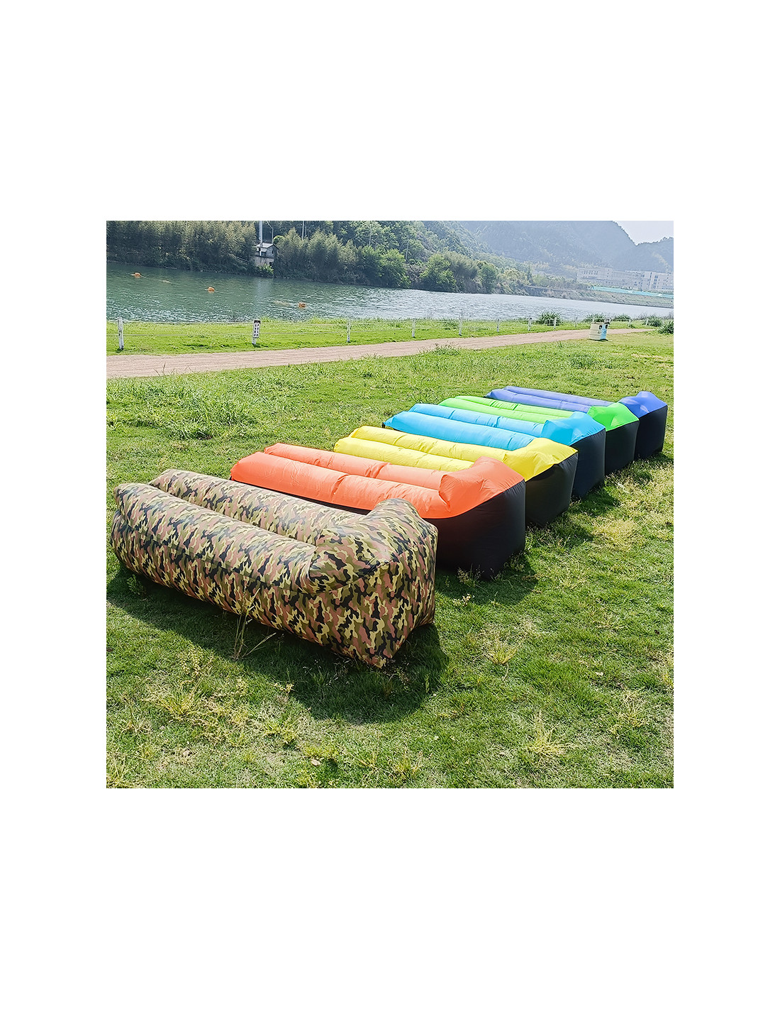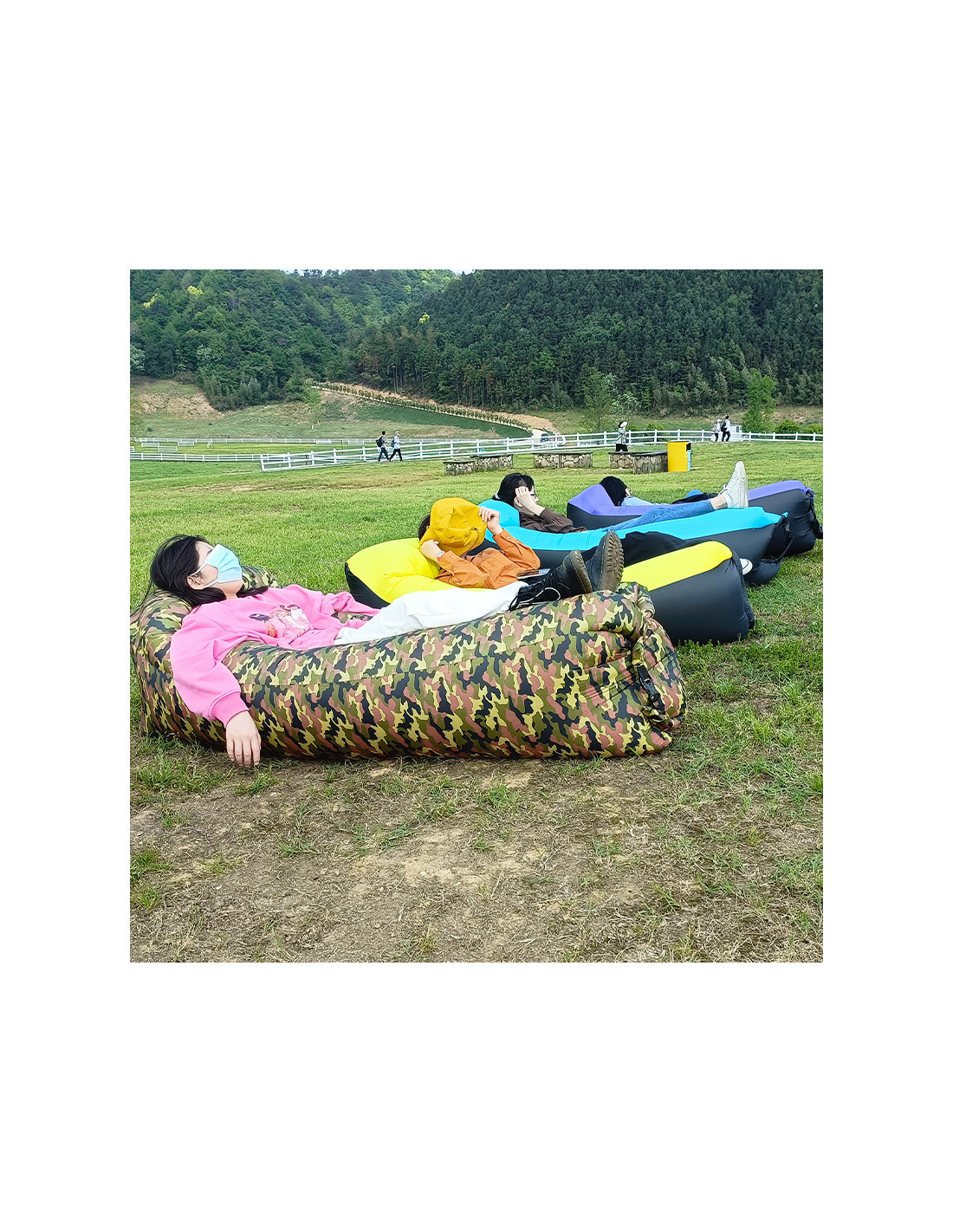 Extrema durabilidade: A espreguiçadeira inflável leve e fina bem tricotada é composta de Rip-Stop 190T impermeável de alta densidade, poliéster e construído para suportar uma ampla gama de superfícies planas, incluindo areia, grama, neve, água e até cascalho.